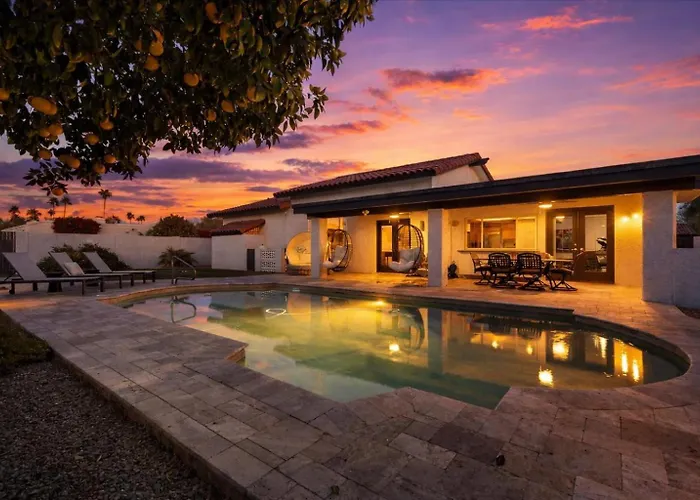 Beverly Charm- Private Pool - Mini Golf - Games Phoenix villa is gelegen op 25 minuten wandelen van Mayo Clinic en biedt toegang tot tal van toeristische attracties. Gasten kunnen genieten van wandelen, paardrijden en biljart in het vakantiehuis, gelegen op 4 km van het Muziekinstrumentenmuseum.